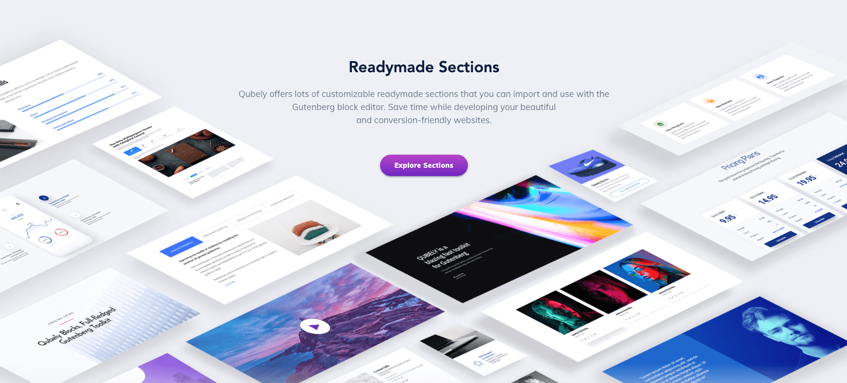 Sections - Qubely ได้สร้าง layout ของ section ต่างๆไว้ให้สามารถเลือกใช้ได้เลย (pre-made) โดยแบ่งออกเป็นหมวดหมู่ประเภทต่างๆ (Contact, Project, Feature, Team, Call to action, Pricing, Footer, Service, Testimonials Header, Content) เรียกง่ายๆว่าเราสามารถเลือกประกอบร่างส่วนต่างๆออกมาได้เลย