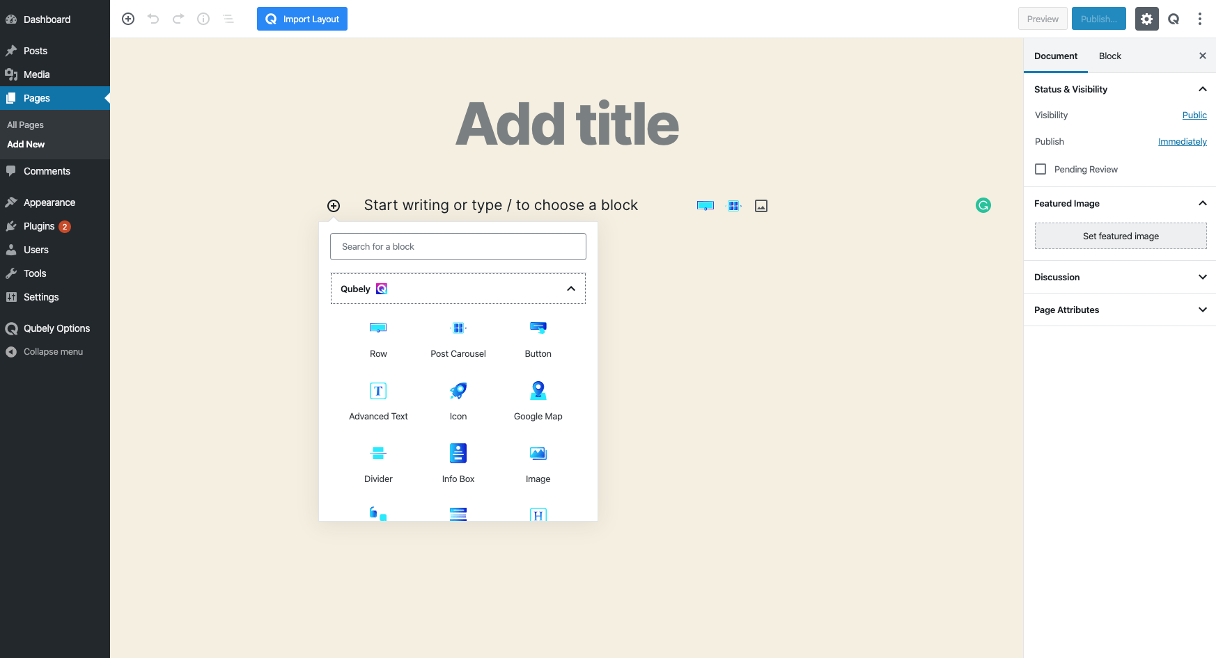 ต้องแจ้งเบื้องต้นก่อนว่าด้วยความเป็น Designer ที่ไม่ได้มีความรู้ของการ Coding มากมาย สิ่งที่คาดหวังจากตัวช่วยที่จะทำให้สามารถจัดการหน้าตาของ website ได้เอง แบบที่สามารถทำได้อย่างจริงจัง ก็เลยไปจบอยู่ที่ WPBakery มาซักระยะ เนื่องจากมันมี options และ Elements มากมายที่ทำให้เราสามารถขึ้นโครง website ได้อย่างที่เราออกแบบเอาไว้ จนหลังๆก็เริ่มเปลี่ยนรูปแบบการทำงานมาเป็นออกแบบบนตัว site เลย แทนที่จะ Design บน Photoshop ก่อน เพราะเราเริ่มชินและเข้าใจกับรูปแบบและข้อจำกัดต่างๆของมัน แต่สิ่งที่เป็นปัญหาและเห็นได้ค่อนข้างชัดเจนคือ มันข้า! ยิ่งถ้าในหน้า page เรามีการออกแบบโครงสร้างไว้อลังการเท่าไหร่ หลังบ้านในการ edit ส่วนต่างๆยิ่งช้าเพิ่มขึ้นเท่านั้น แต่ตัว Qubely ถ้าให้เปรียบเทียบส่วนตัว เหมือนยก Elementor ไปบวกกับ Gutenberg โดยที่การจัดการต่างๆยังอยู่บนหน้า Editor หลักของ wordpress เอง
